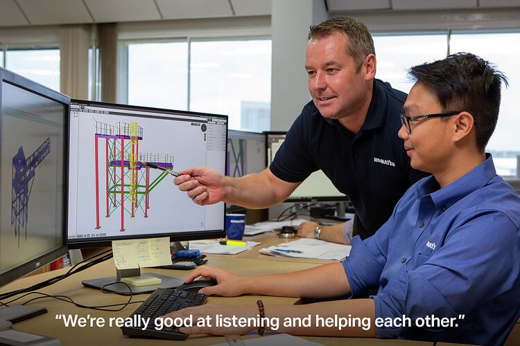 作為研發(fā)部門的工程師,她擁有嘗試創(chuàng)意、測試方案并快速解決問題的機(jī)會。在小松,工作節(jié)奏高效且注重實(shí)踐,團(tuán)隊(duì)協(xié)作緊密。業(yè)務(wù)范圍廣泛,從現(xiàn)有機(jī)械的升級到全新機(jī)械的從零構(gòu)建,不一而足。